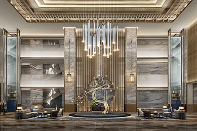 “臨安第一景”青山湖水面綠植四季變化的倒影,被抽象在大堂、宴會廳、會議室、客房地毯紋理中,暈染出江南的潑墨山水。