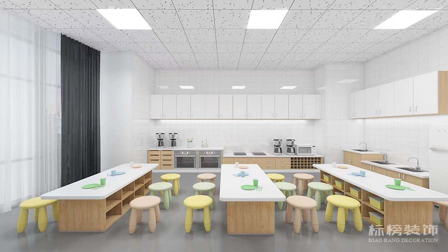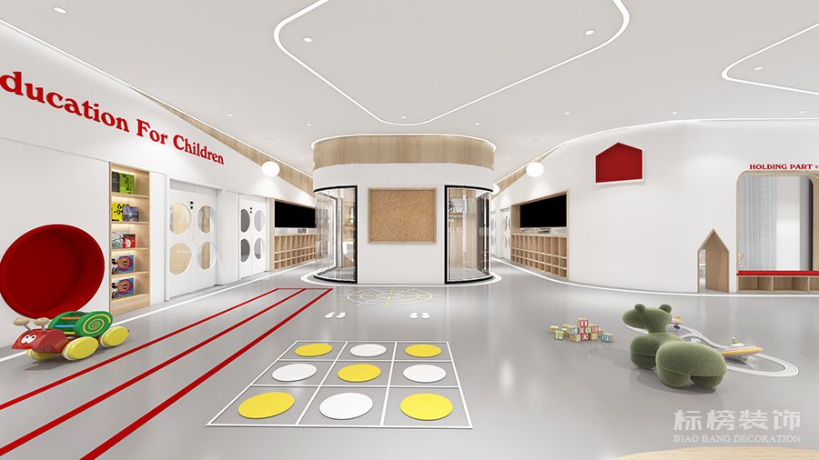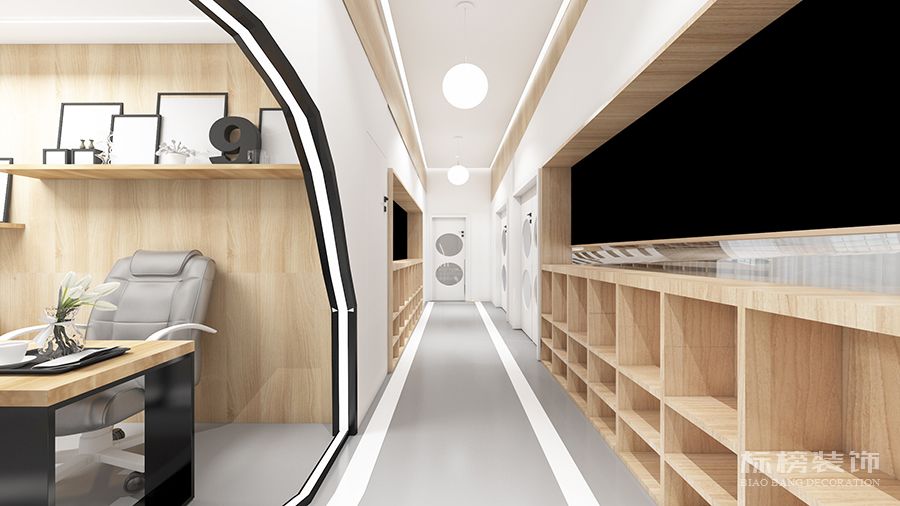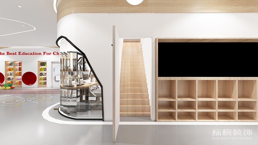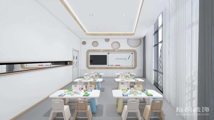 整體為比較純凈的白色和松木色為主,地板則選用灰色耐臟的色號,合理的色彩搭配再加上適合的空間結(jié)構(gòu)為老師學(xué)生帶來歡快的環(huán)境縈繞,同時(shí)使家長在進(jìn)入機(jī)構(gòu)時(shí)不會覺得過于擁擠雜亂,給家長留下優(yōu)秀的第一映像。